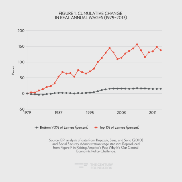 Rieger’s argument is that, in the face of growing inequality (such that “the top 1 percent wage has increased by 138 percent since 1979, [while] the wages of the entire bottom 90 percent of earners have grown by the comparatively meager margin of just 15 percent—and an even more unequal distribution of wealth”), it’s imperative that the United States “develop policies that not only mitigate existing economic inequality and poverty, but that actually reverse these trends for the long term.”